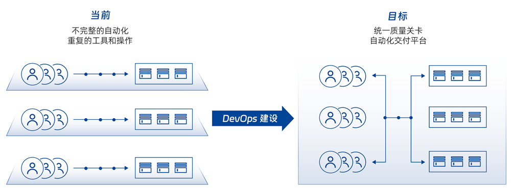 面向行业客户,使用神州信息 DevOps 平台,基于开放成熟的技术架构,结合基于最佳实践的咨询、实施及改进服务,整合优化现有的流程和工具,解决企业 DevOps 平台建设过程中的关键难题,完善和提升持续交付软件和 IT 服务的能力,有效的支撑和引领业务的发展。